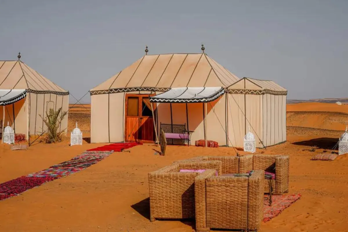 Hoy salimos de Fez hacia Merzouga, donde visitaremos y descubriremos el Sáhara. Una excursión de tres días de Fez a Merzouga nos llevará a través del Atlas Medio. Comenzamos nuestro viaje en Ifrane, una encantadora estación de esquí. Después, conduciremos vía Azrú hasta el Bosque de Cedros, donde se pueden avistar monos salvajes. A continuación, continuaremos nuestra aventura por el desierto hacia Midelt, famoso por sus minerales y sus manzanas. Tras almorzar en Midelt, nos dirigiremos a Erachidia, Erfoud y Rissani a través del valle del Ziz. Finalmente, nos dirigiremos a Merzouga, donde pasaremos la noche en un riad/hotel y cenaremos.