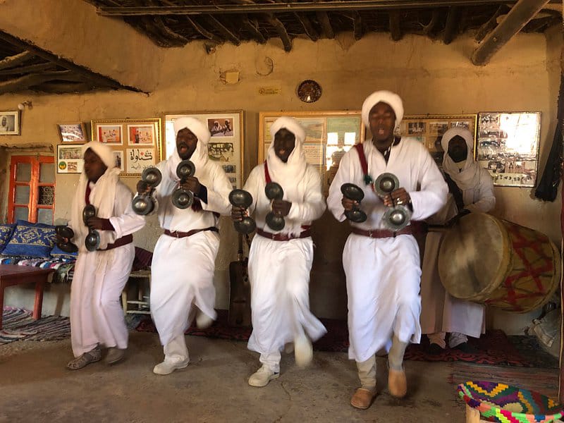 A continuación, viajarás hasta el pueblo de Khamlia, famoso por su comunidad Gnawa, descendientes de esclavos africanos que mantienen viva su tradición musical. Serás recibido con un té de menta y disfrutarás de una presentación en vivo de música Gnawa, llena de ritmo y cultura.